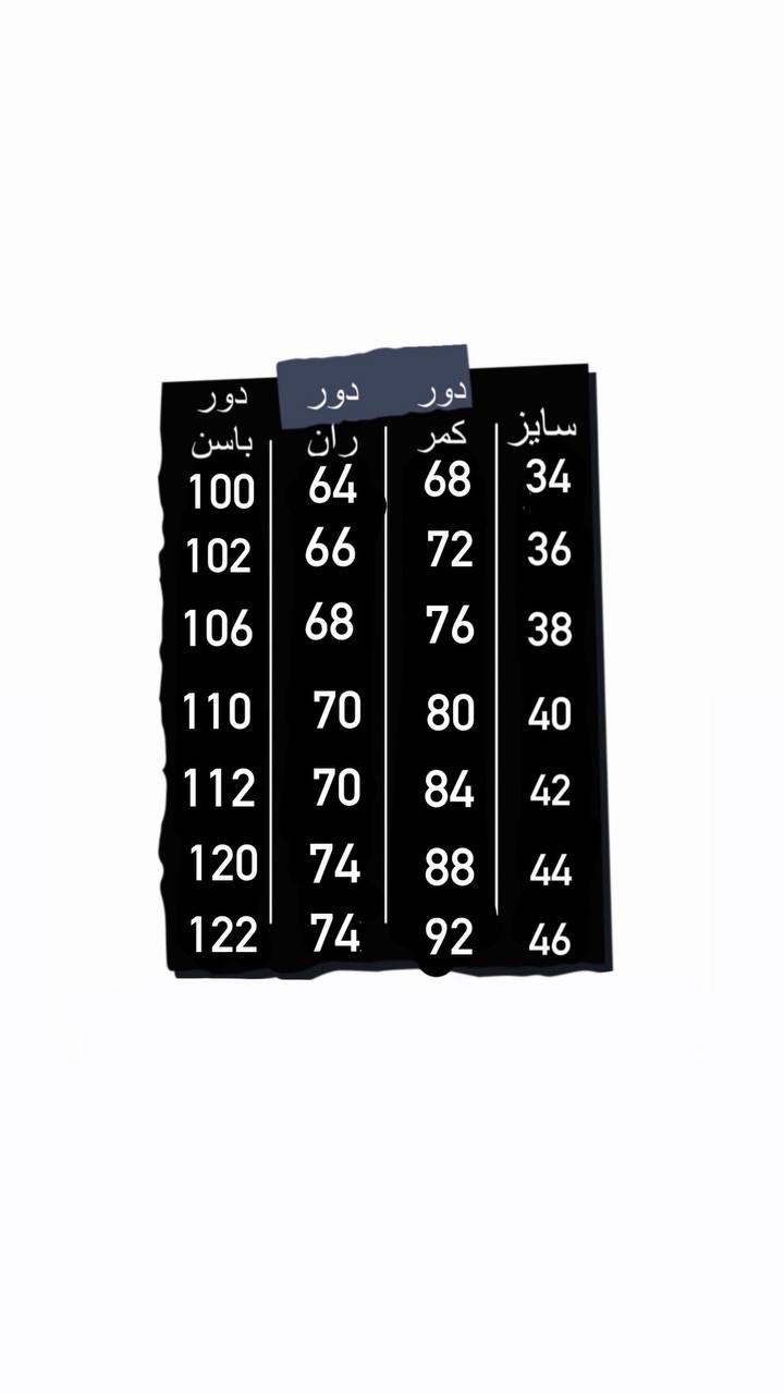 | سایز بندی | 34, 36, 38, 40, 42, 44, 46 |