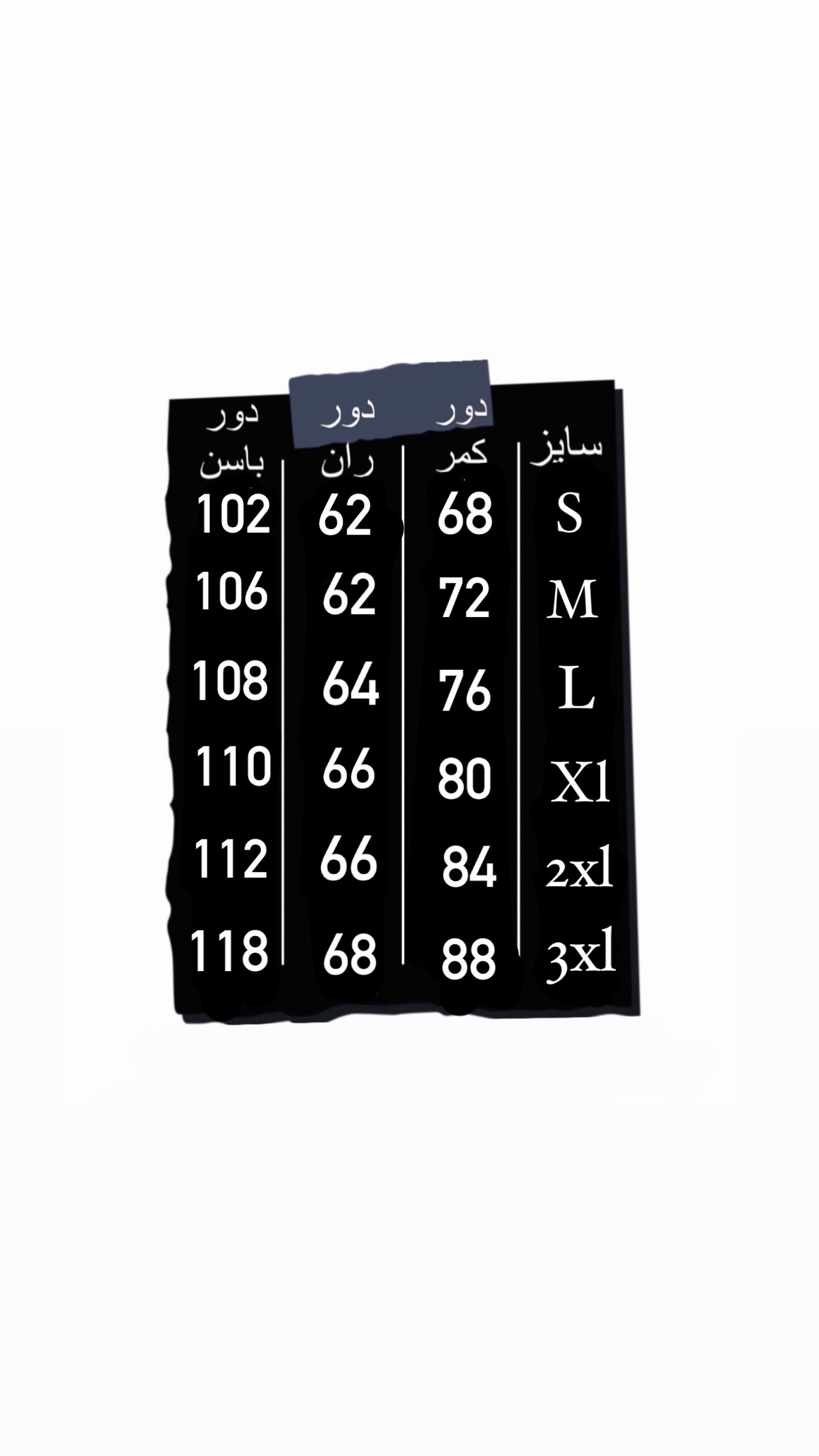 | سایز بندی | L, M, S, XL, XXL, xxxl |